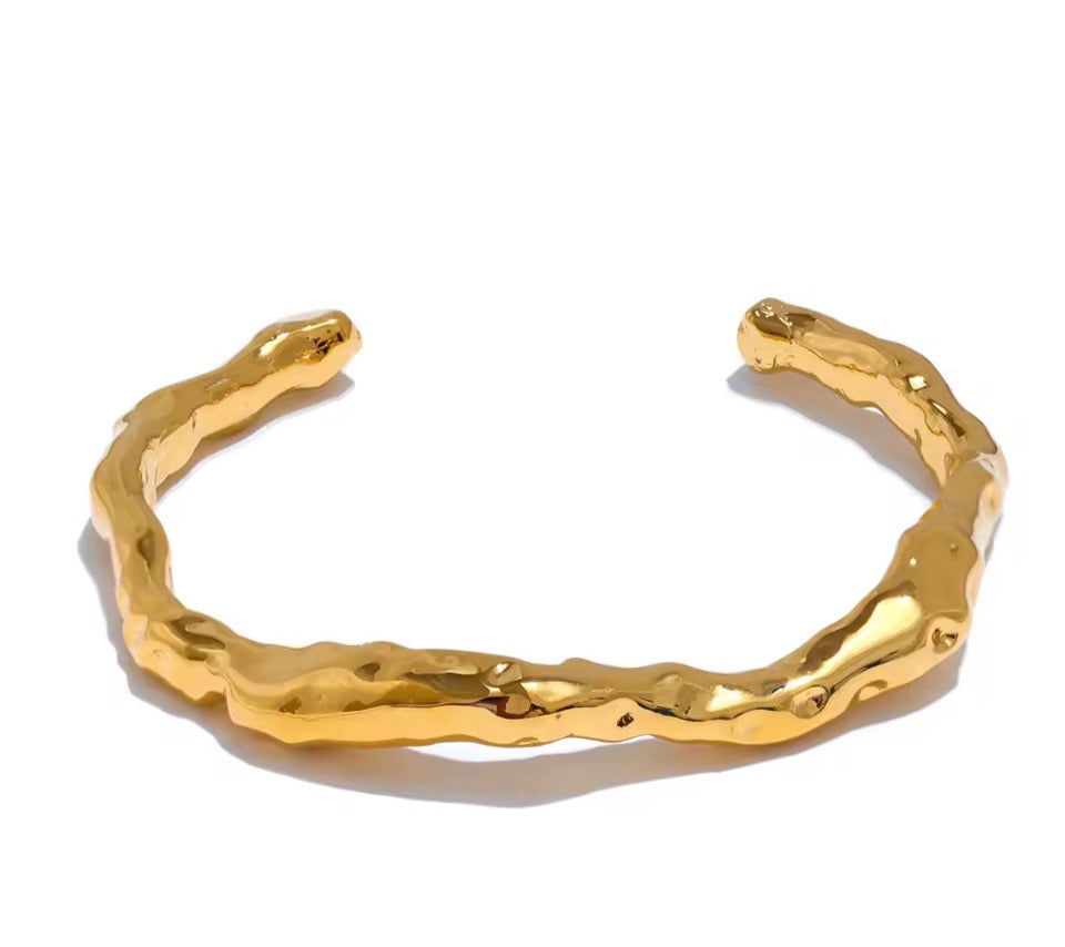 With its fluid, organic texture and bold 18K gold plated shine, this piece adds instant edge and effortless sophistication to any look. Every curve and contour gives it that handcrafted, sculptural feel — the kind of jewellery that looks designer without the designer price tag.