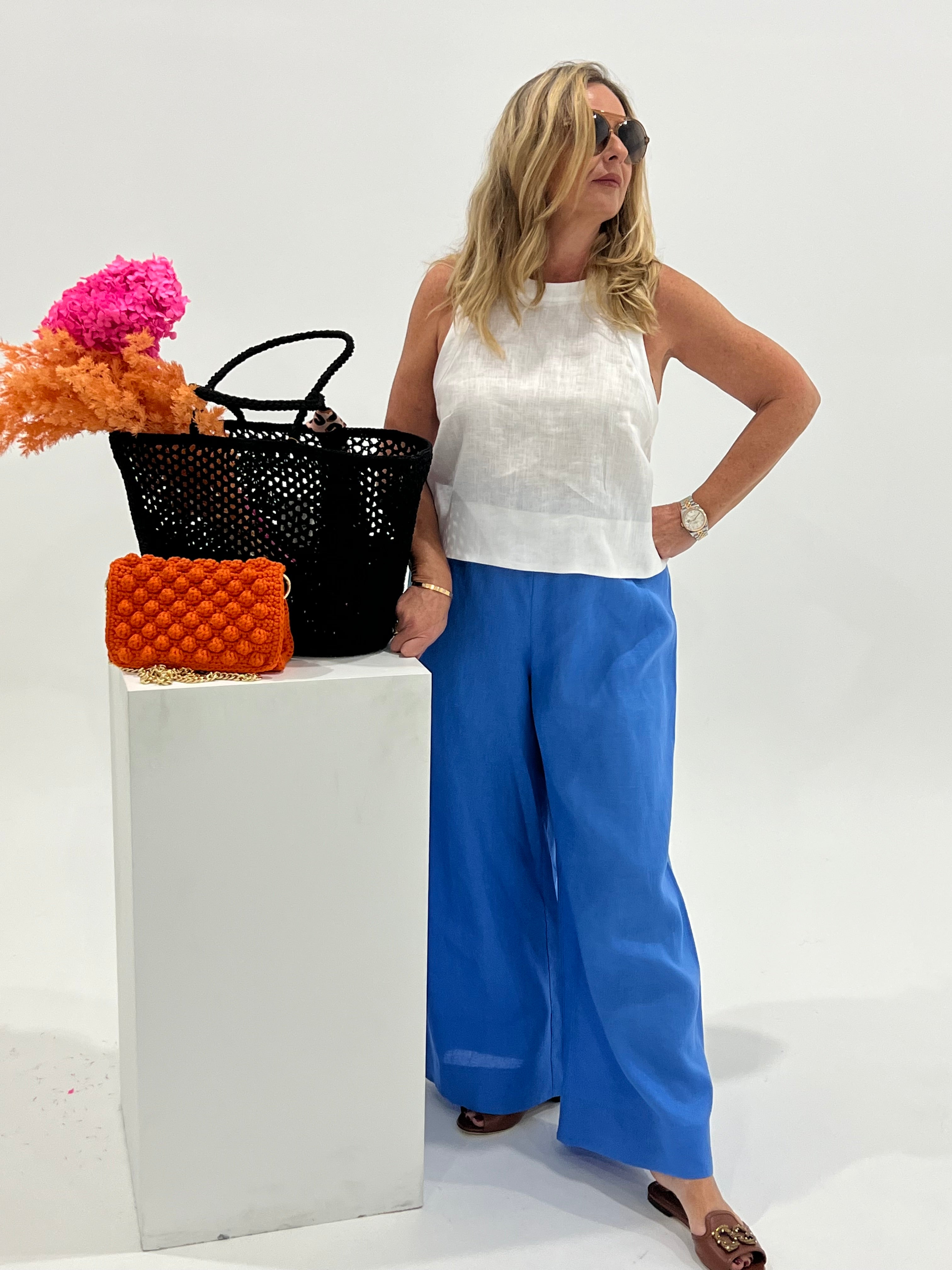 GREEK ARCHAIC KORI 25- PULL ON WIDE LEG LINEN PANTS- BLUE RAF