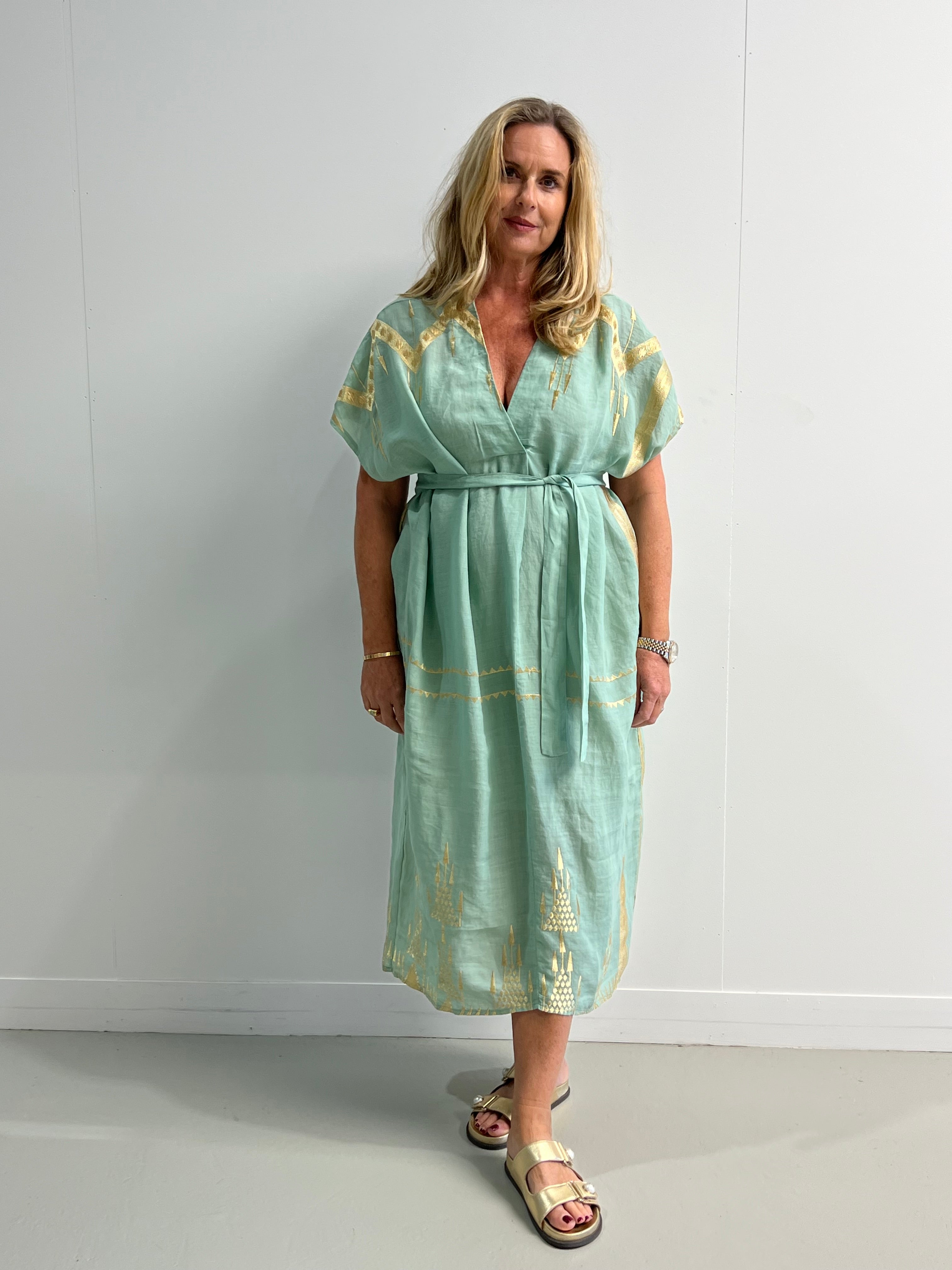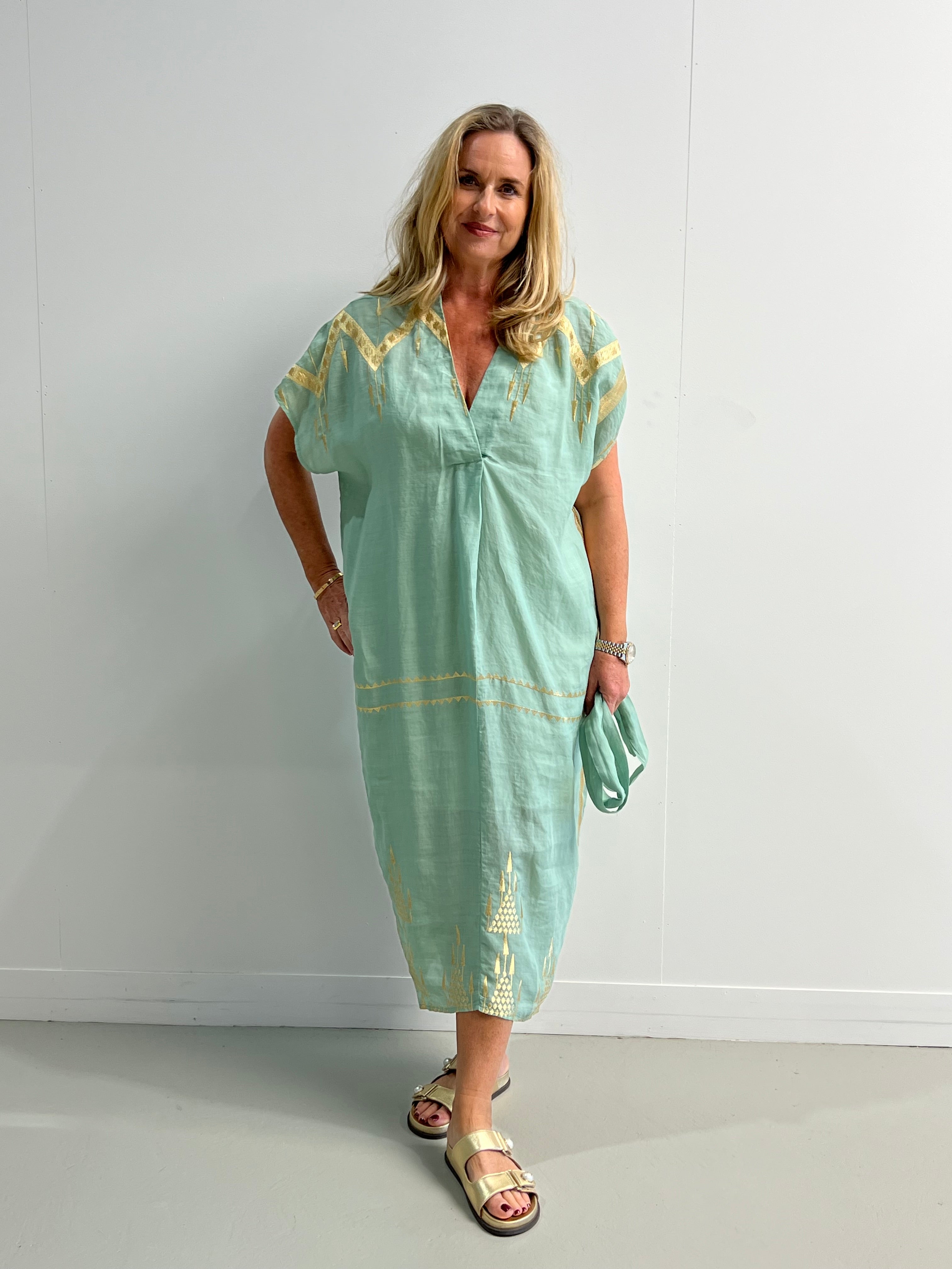 GREEK ARCHAIC KORI- ROOTS KAFTAN - SEA GREEN/GOLD