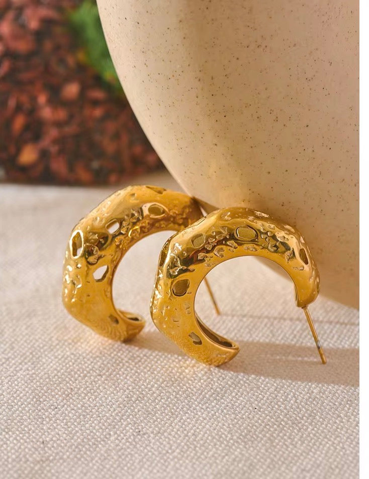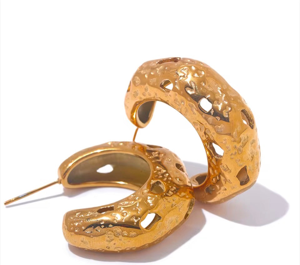 - 18K gold triple plated stainless steel earrings, hollow back making them lighter, shadow cutouts