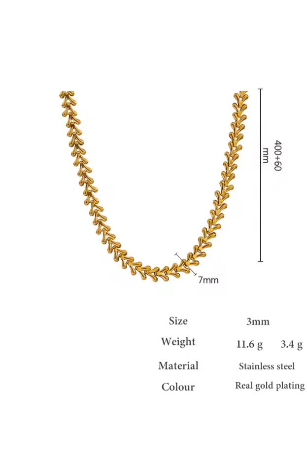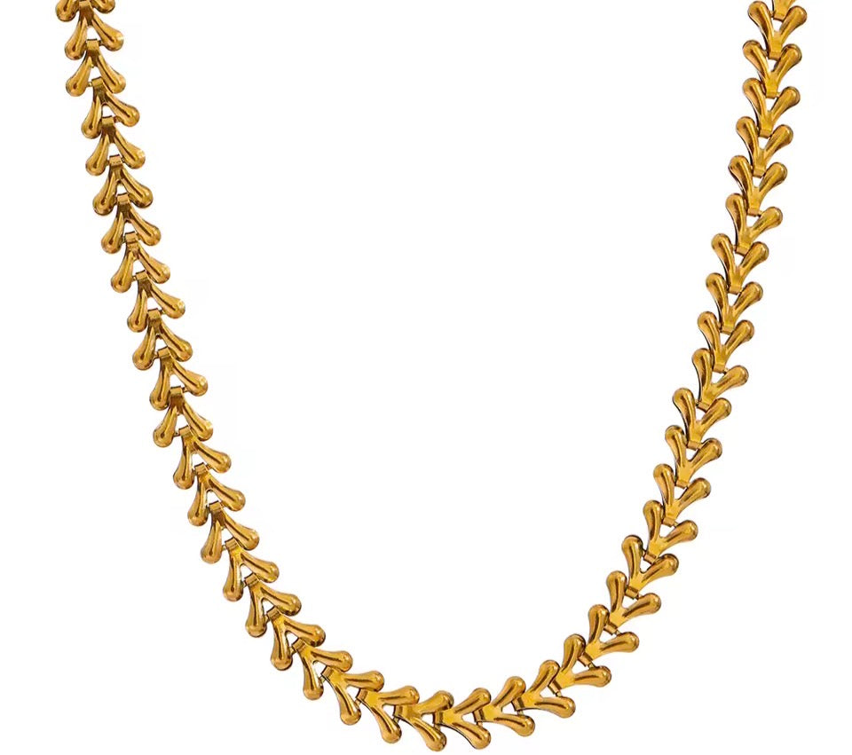 Elevate your everyday look with this statement-making 18K gold plated leaf chain necklace. Designed with fluid, organic links, this piece delivers effortless luxury with a bold, modern edge.