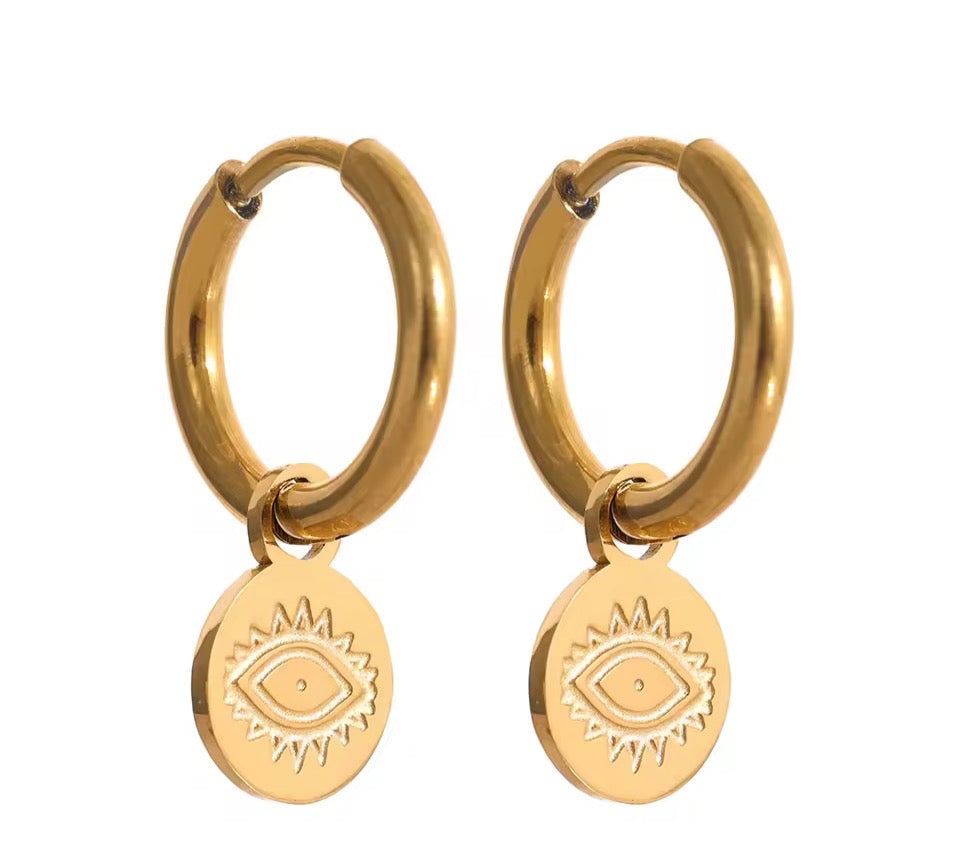 Your everyday, wear all day long, go out with, sleep with, shower with heart huggies imprinted with the protection and good luck evil eye. The perfect size of petite perfection.