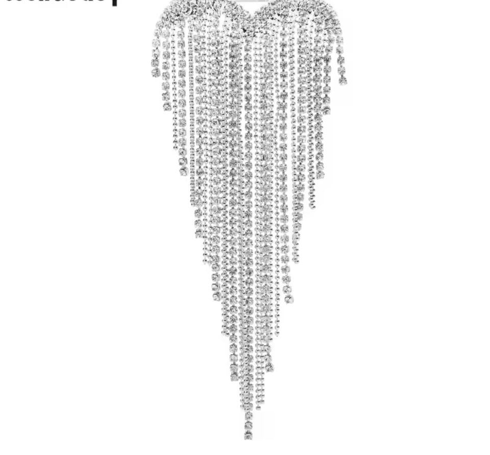 Designed to command the room, this cascading crystal brooch drapes in layers of shimmering strands of clear zirconias , creating fluid movement and high-impact glamour. Inspired by vintage red-carpet and couture runway styling, it transforms even the simplest outfit into a show-stopping moment.