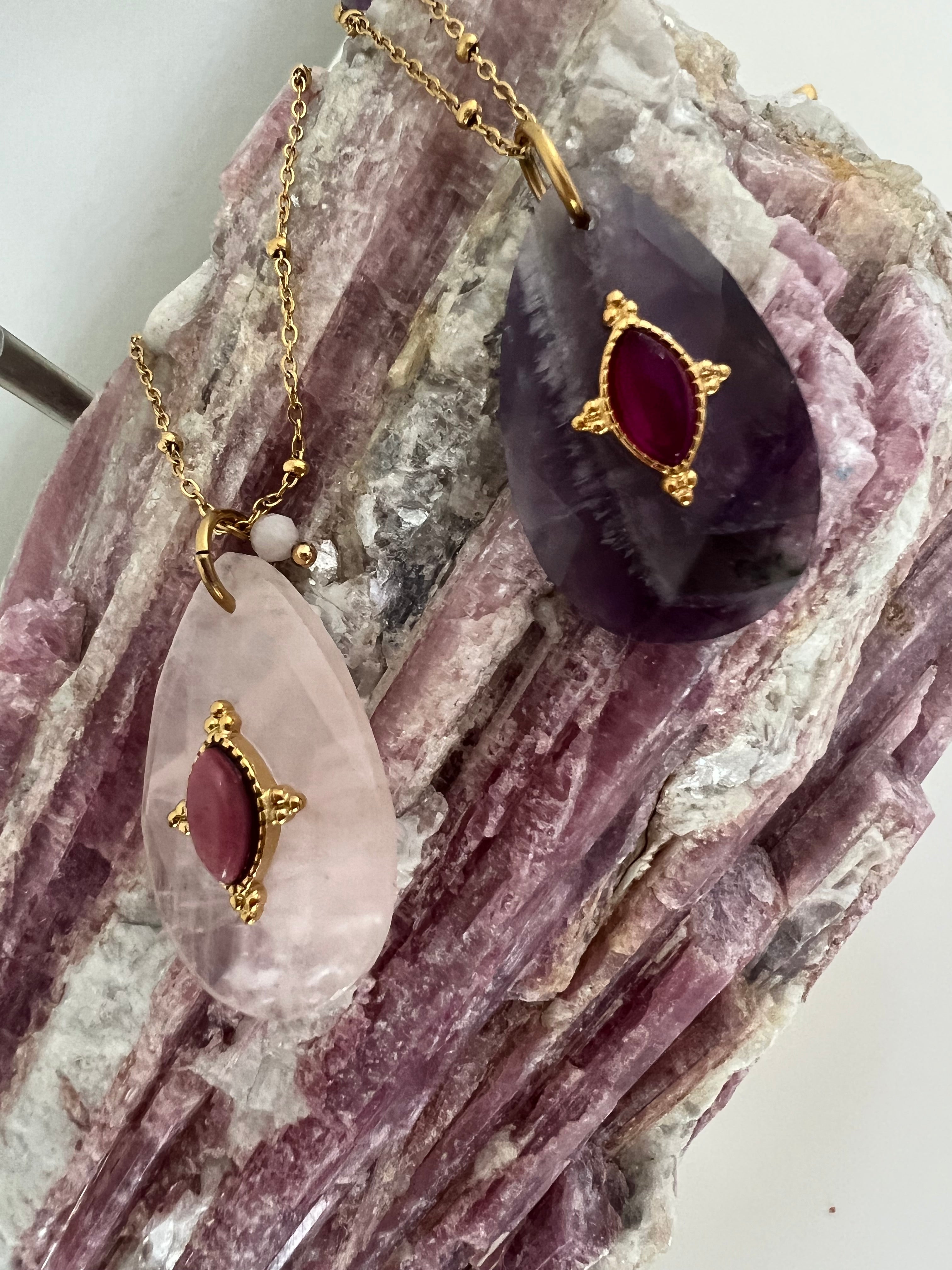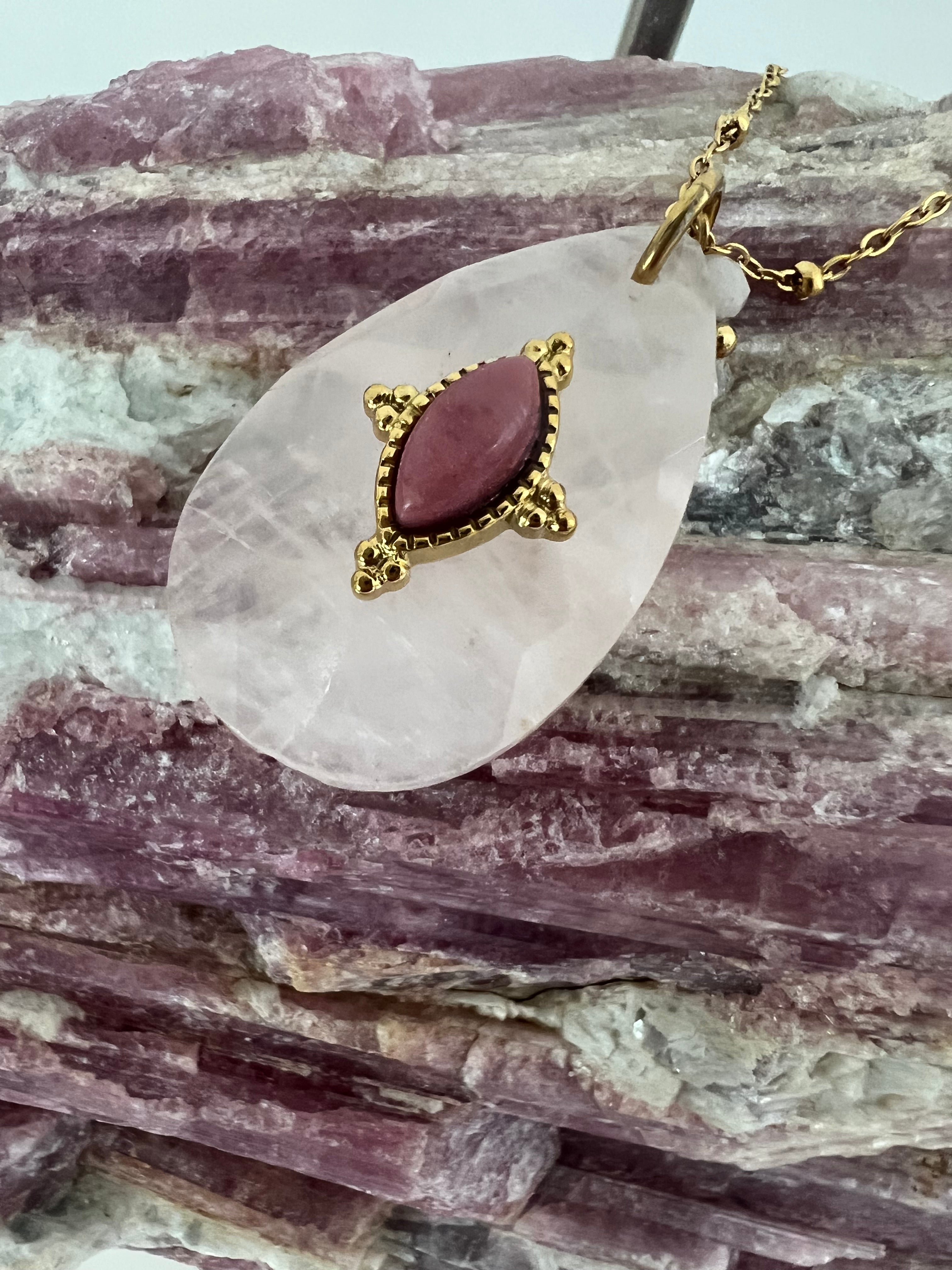 HON-AVA-ROSE QUARTZ CRYSTAL DROP NECKLACE